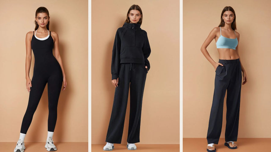 Shop our activewear collection—leggings, flared yoga pants, wide-leg styles, matching sets, sports bras, tops, skirts, dresses, and more.